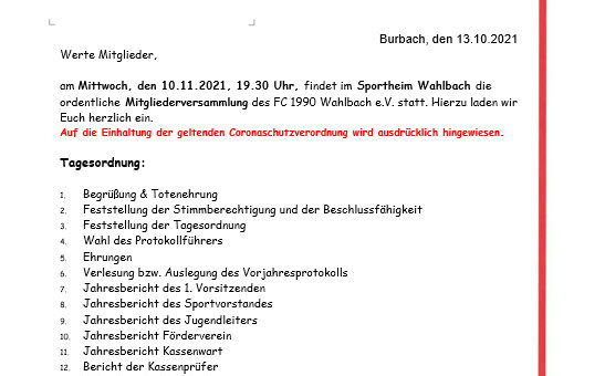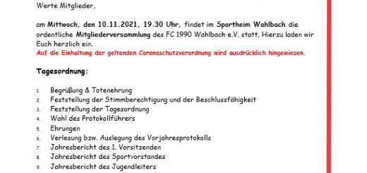 Am Samstag dem 19.09.2020 findet um 09:00 Uhr auf bzw.. um dem Sportplatz und dem Sportheim in Wahlbach...