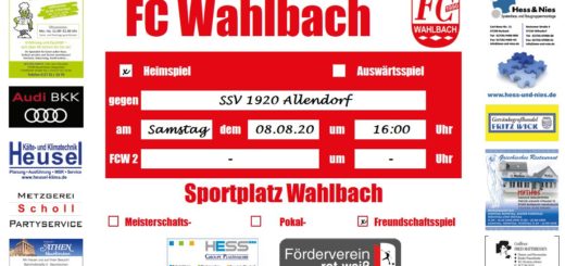 Anstoss 14:00 Uhr FCW II – FC 66 Flammersbach Anstoss 16:00 Uhr FCW I – SSV Sechshelden weitere...
